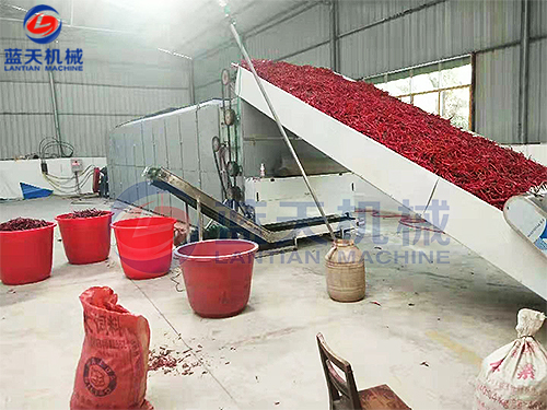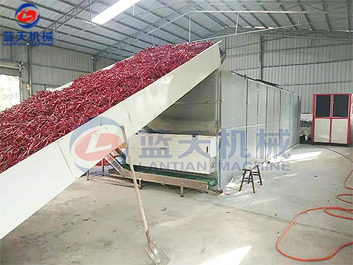 湖南網(wǎng)帶辣椒烘干機烘干現(xiàn)場:可烘干量大